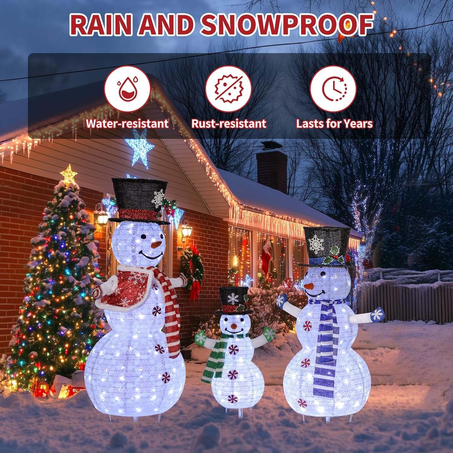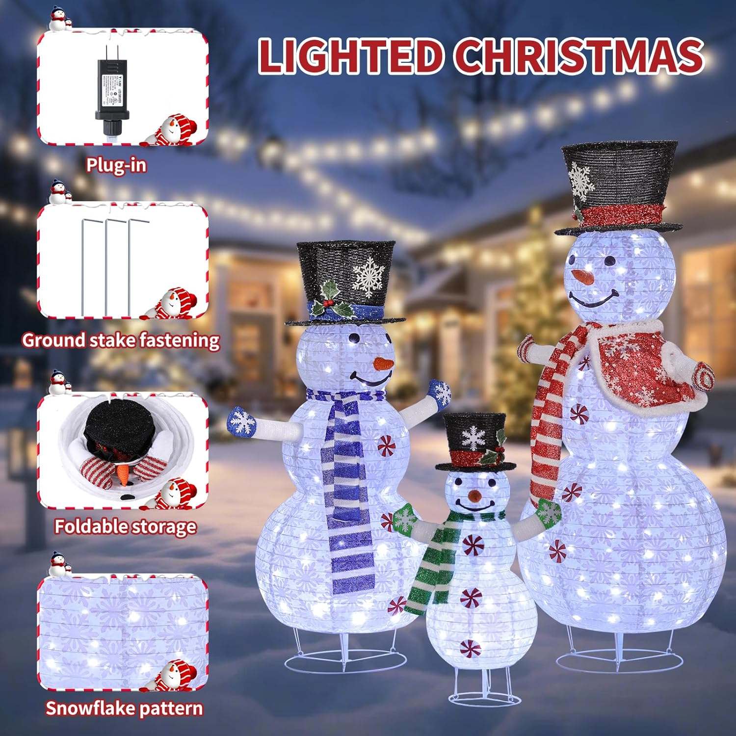 - Lucky Snowman:Hello! We’re the Lucky Snowman family, here to bring joy and good fortune to your home. I’m so happy to finally meet you this Christmas and share holiday cheer together with my family. Place us in your yard and we’ll make your home stand out in the neighborhood while filling your Christmas with happiness and festive spirit.