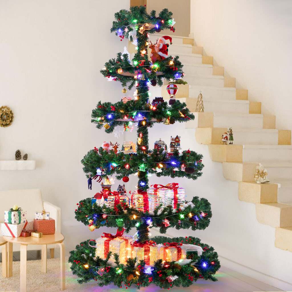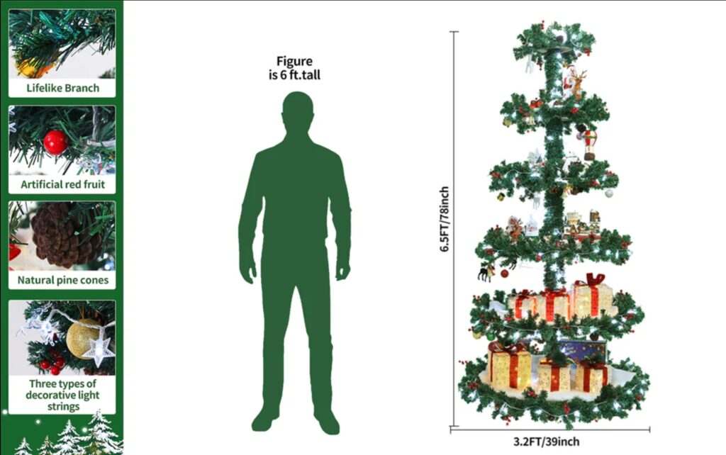 6.5FT Christmas Village Tree with 6 Pre-Lit Garland Tiers