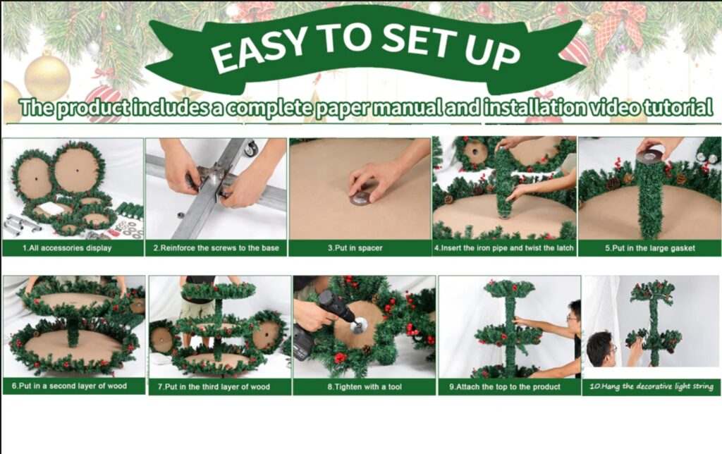 We recommend allowing 30 minutes and having 2 people work together to assemble your Celebration tree. We include a printed set of thorough instructions in the box where you can also scan a QR code to be taken to a step by step assembly video.